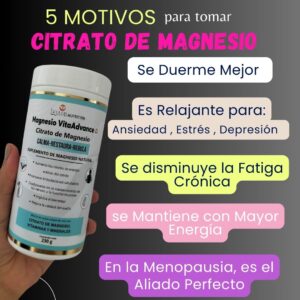 Un Citrato de Magnesio Vita Advance de alta Concentración Premium, con Componentes de excelente calidad y con registro invima. ✅SIN AZUCARES AÑADIDOS, Ni Soya, Ni Lactosa, Ni MALTODEXTRINA.